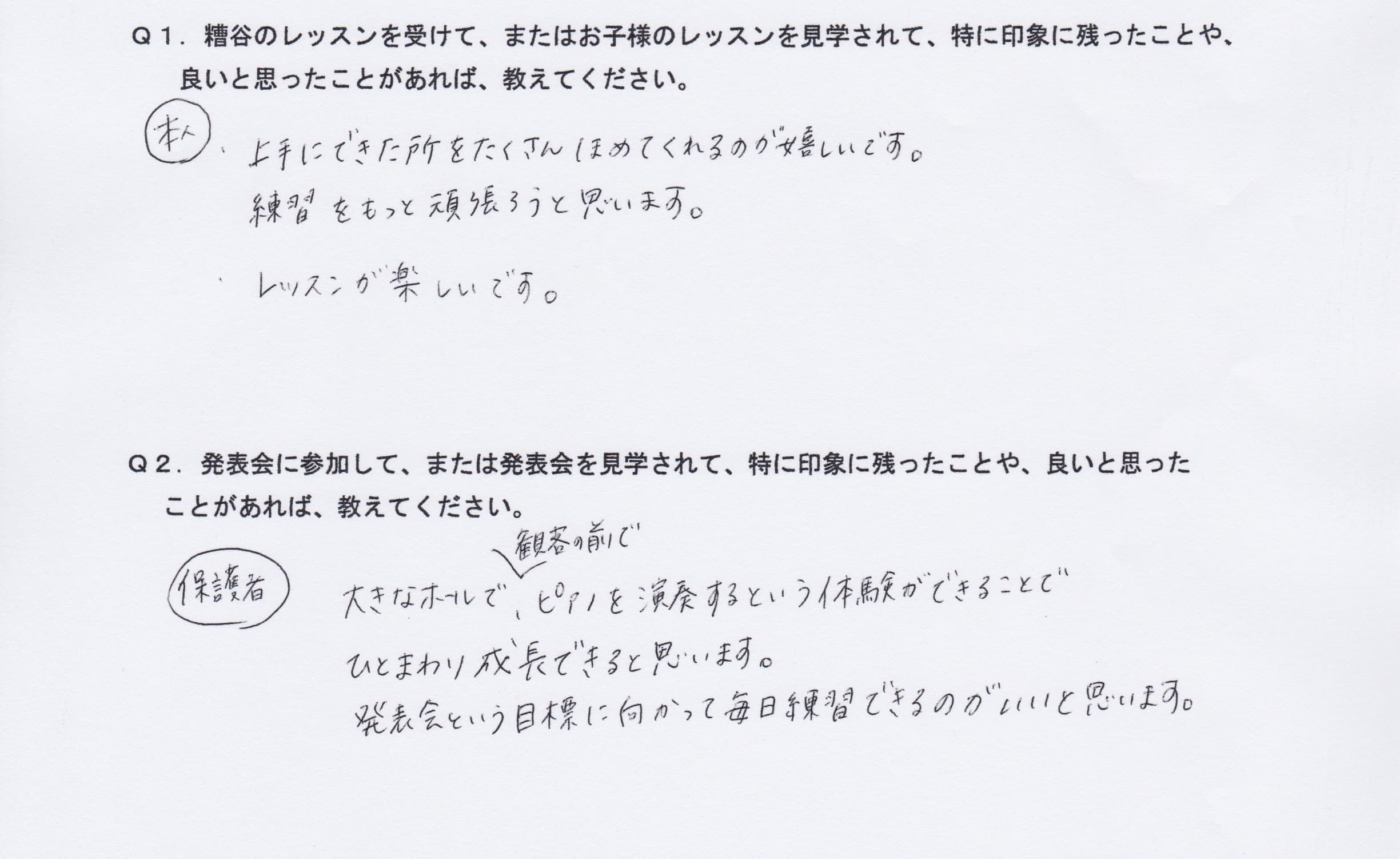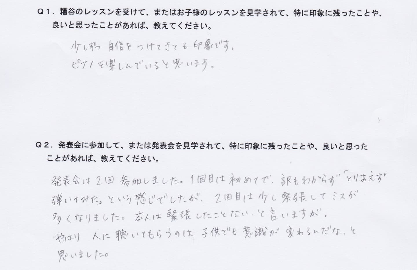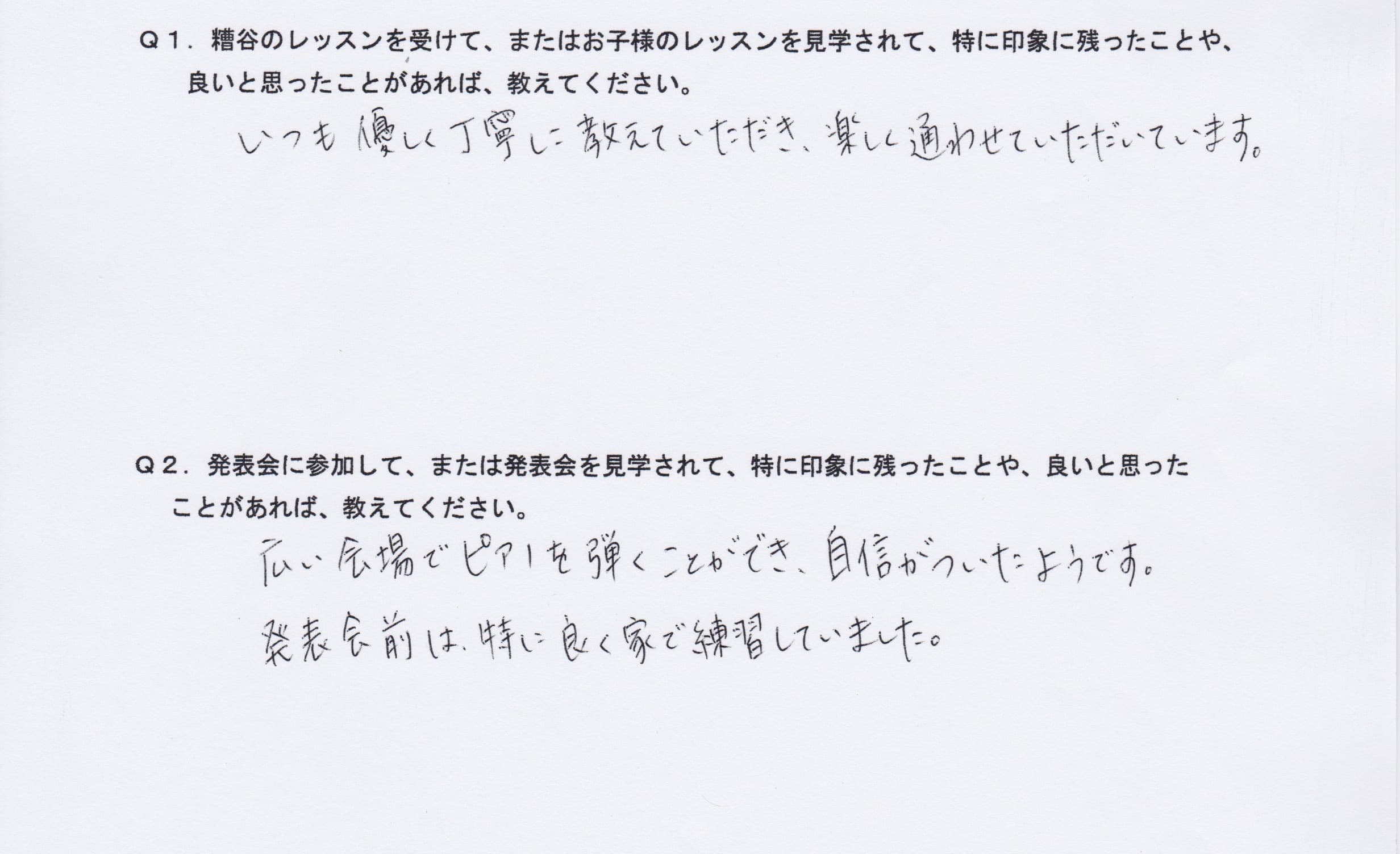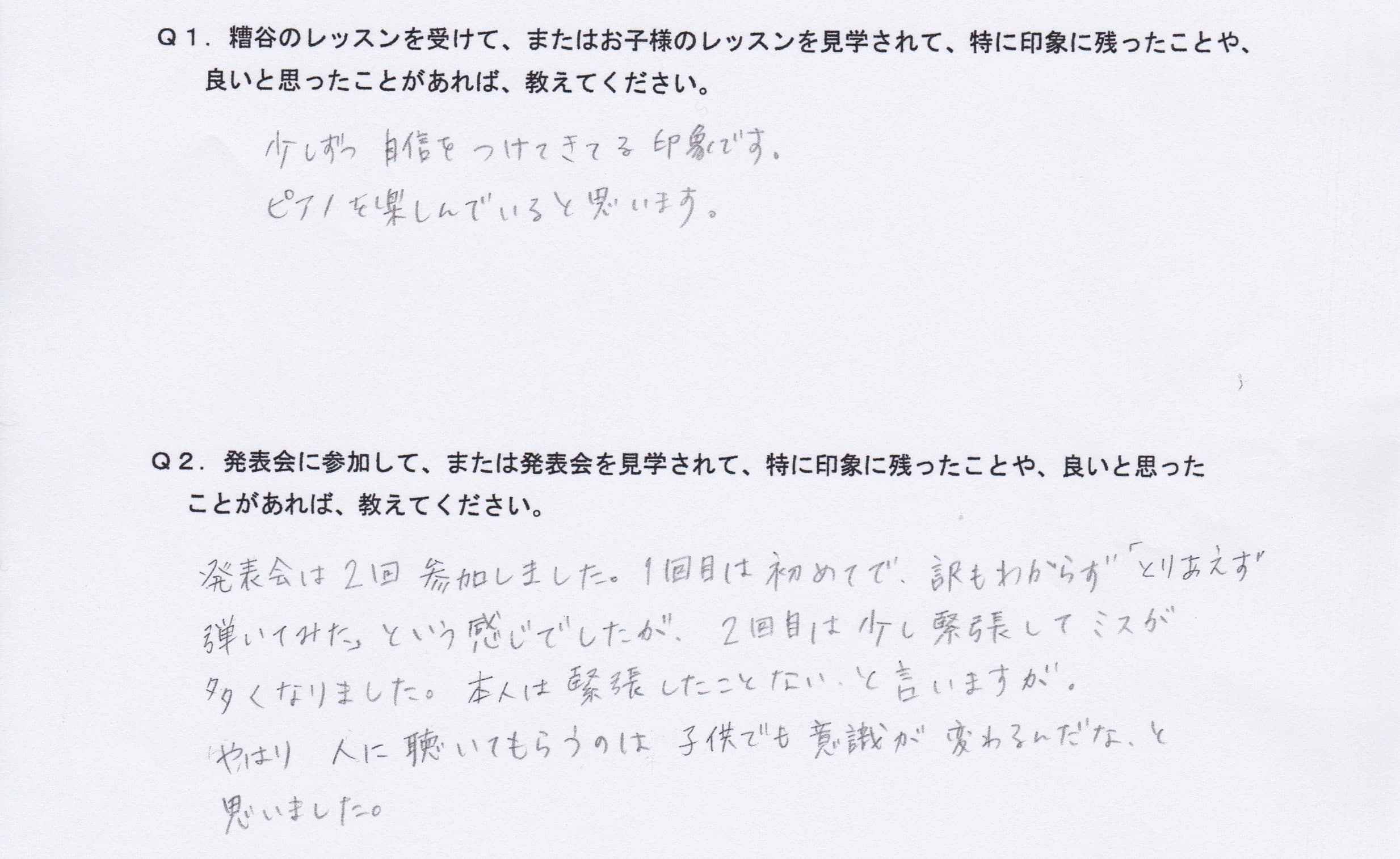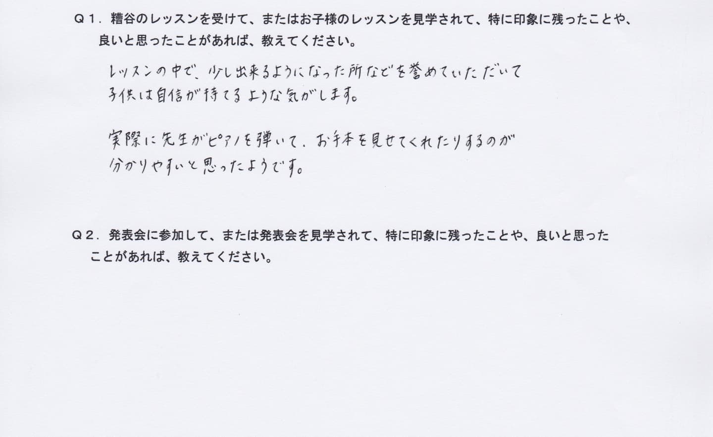 Q1.糟谷のレッスンを受けて、またはお子様のレッスンを見学されて、特に印象に残ったことや、良いと思ったことがあれば教えてください。