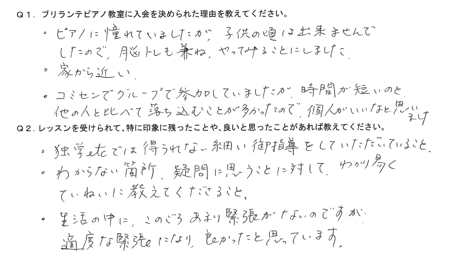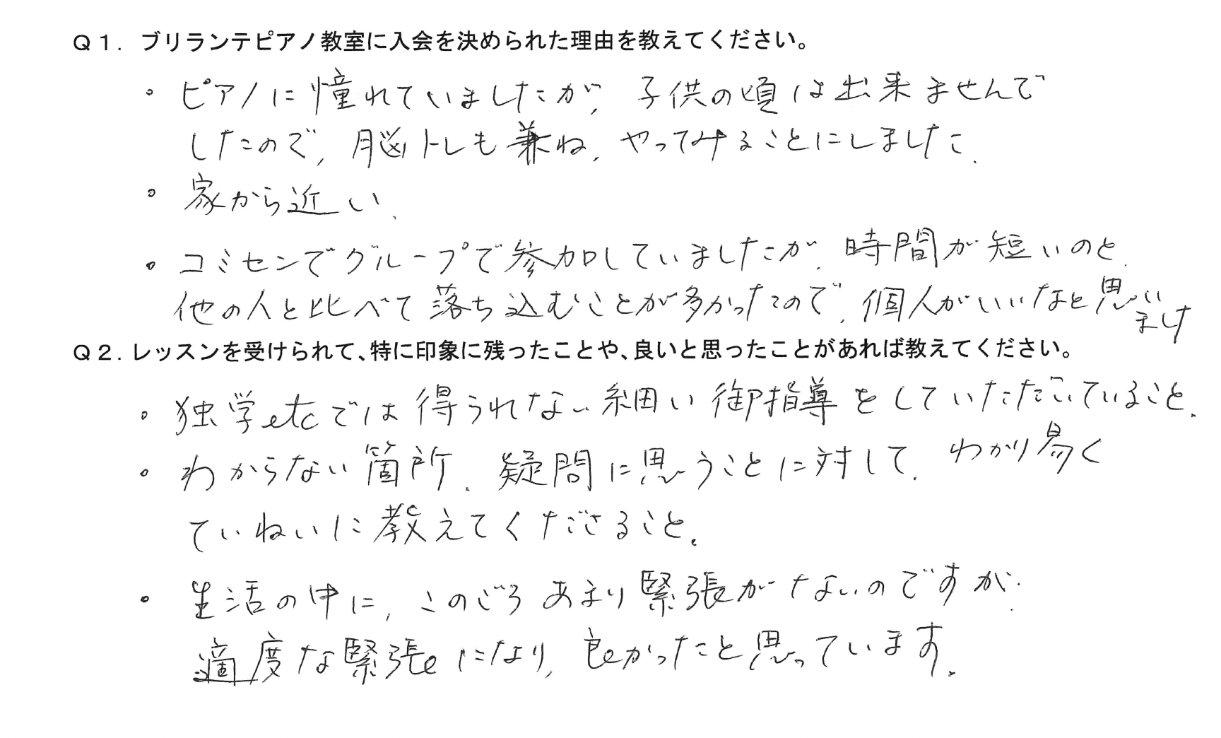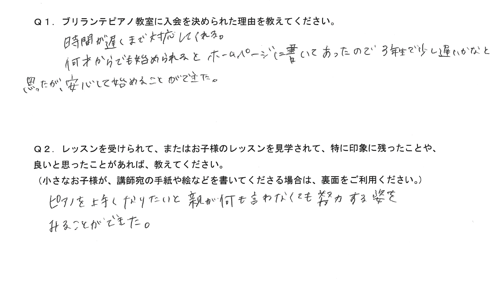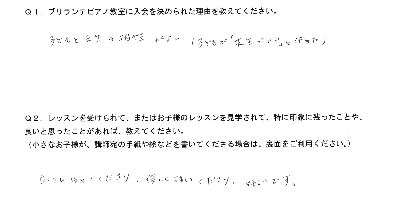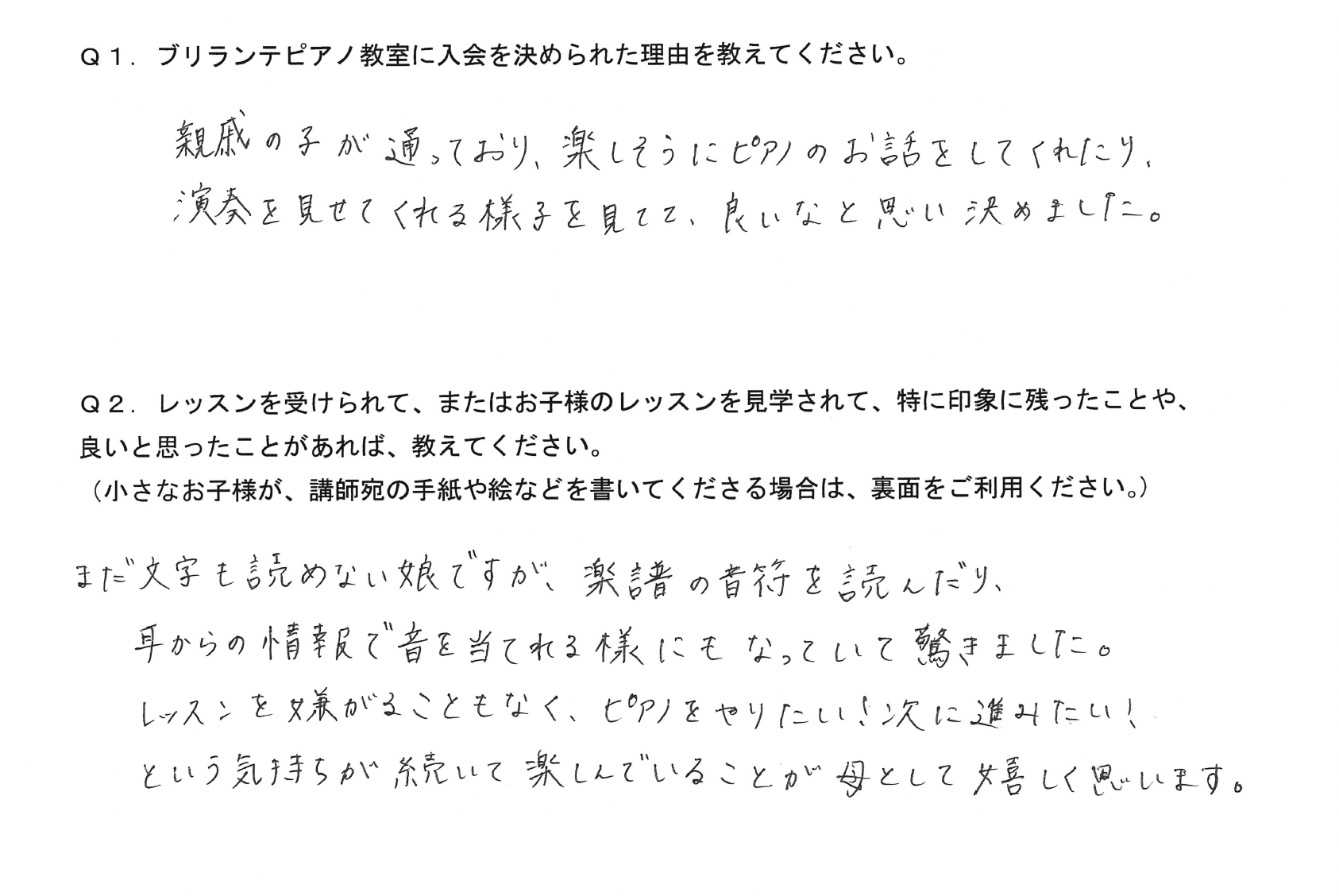 Q1.ブリランテピアノ教室に入会を決められた理由を教えてください。