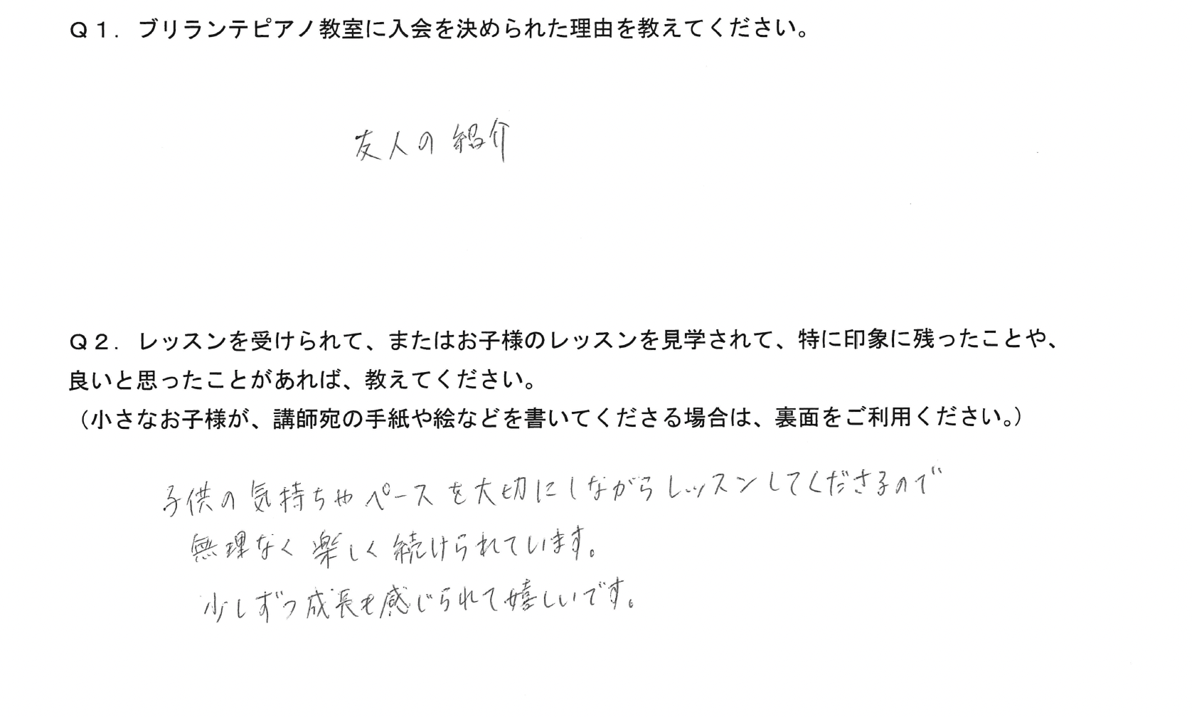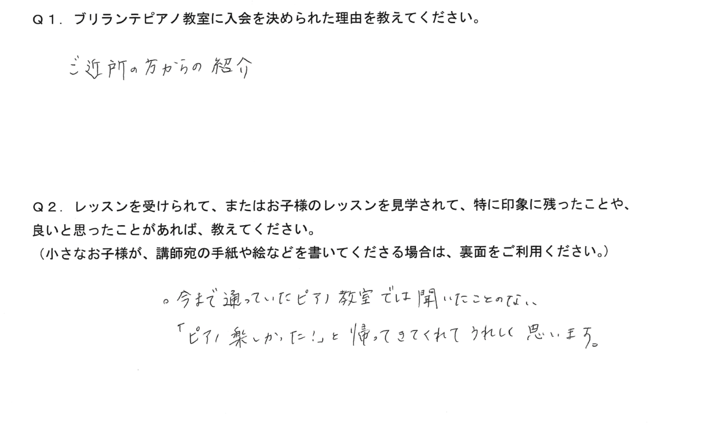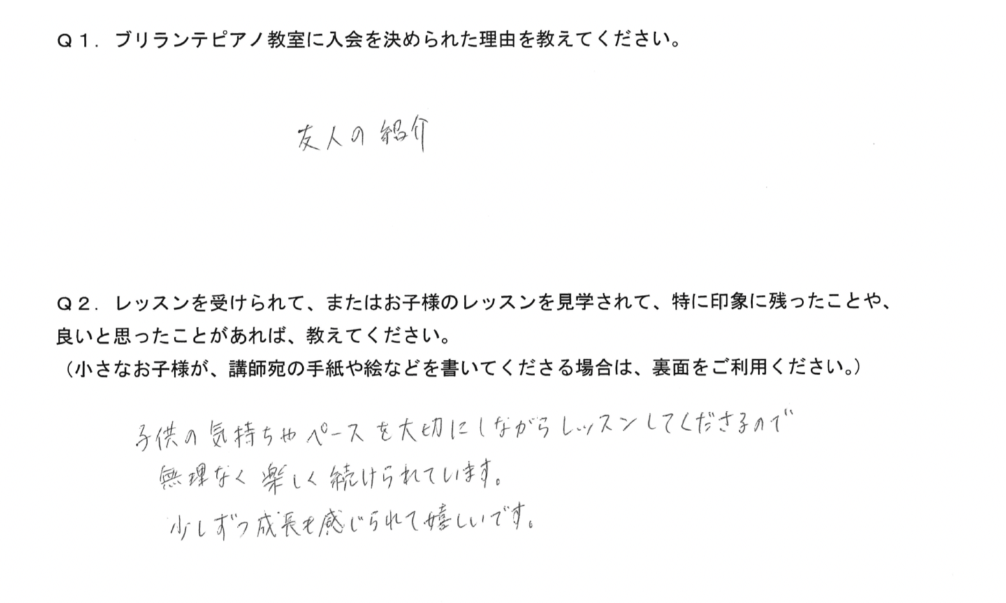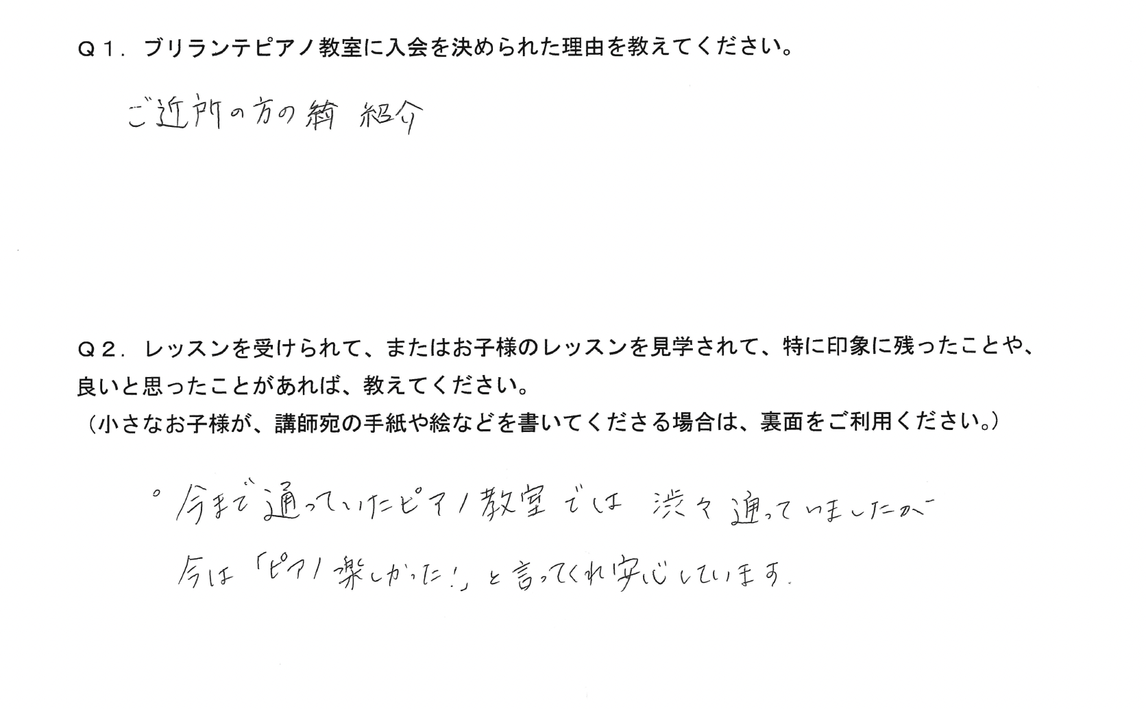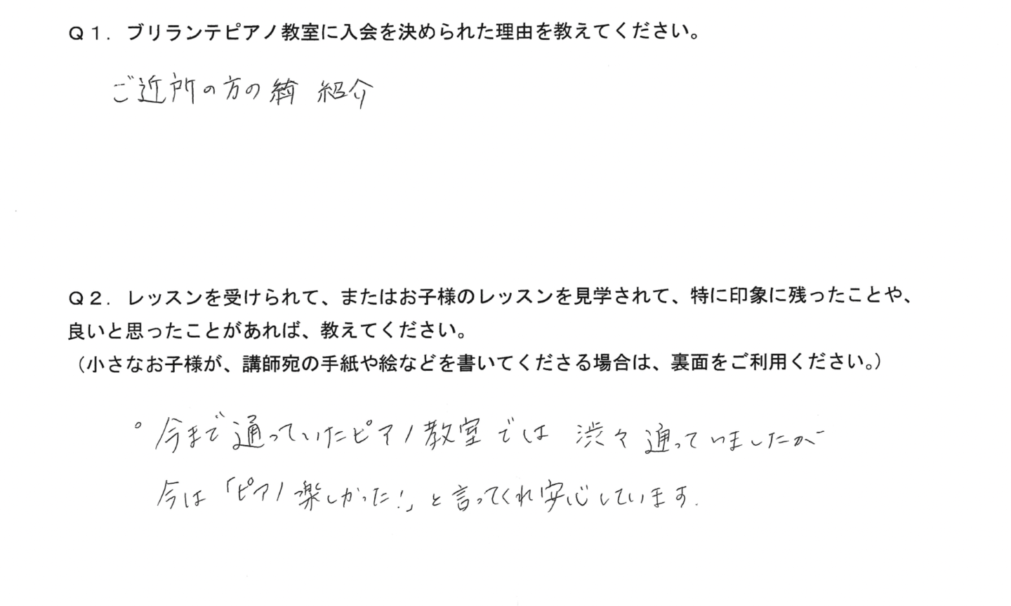 Q1.ブリランテピアノ教室に入会を決められた理由を教えてください。